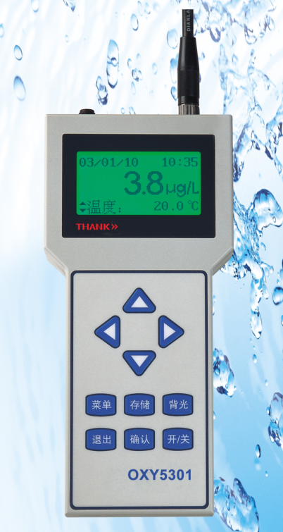 OXY5301溶解氧分析仪可连续测量温度、氧浓度和空气饱和度。适合于电力、啤酒、饮料等行业测量。是电厂的锅炉给水、过程水和凝结水等相关行业的必用仪器。是我国高精度、高性能的新型便携式溶解氧分析仪之一。